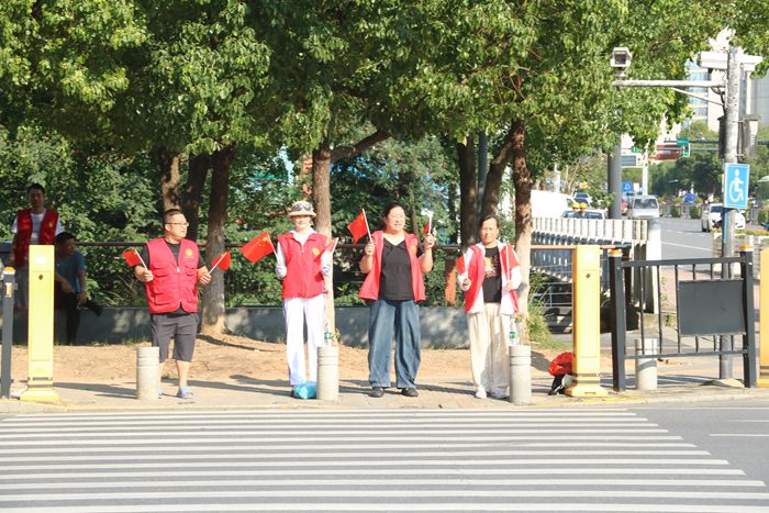 春雨公益协会和县退役军人拥军优属志愿服务队共有23名志愿者参加了这次志愿服务活动。在炎炎烈日下,大家身穿红马甲,在5个志愿服务站点分组维持现场秩序。他们还挥舞着手中的国旗,用声声祝福与鼓励传递着爱国志、拥军情,展现了团结协作、互助向上的志愿团队精神。(摄影:林洪涛)