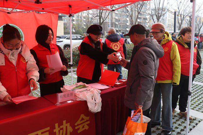 为有效提高志愿服务知识宣传效果,协会志愿者们以有奖问答形式,宣传志愿服务知识,激发起广大群众的参与热情。在志愿者们的鼓励下,现场群众认真回答,每答对一题,大家就鼓起掌来,气氛活跃、融洽。据悉,协会在现场发放爱心人士们捐赠的礼品近200件。其中,毛元玉捐赠学雷锋纪念品——钥匙扣100个。(摄影:林洪涛)
