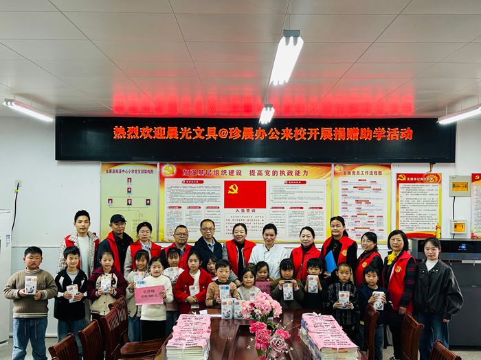 3月27日上午,晨光文具、珍晨办公向金寨县南溪中心小学的孩子们捐赠晨光字帖500本,还有斯塔马克笔30盒,春雨公益协会共有10名志愿者提供后勤保障等志愿服务。此外,乐海生为2名困境儿童捐助600元,余山红葡萄酒有限公司赵越、吴述琴、吴小云向1名困境高中生捐款900元。