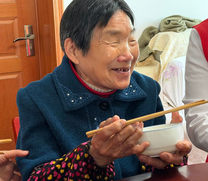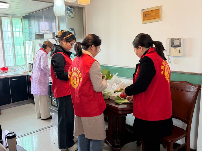 在梅山镇红源社区的前期沟通和协调下,3月28日上午,志愿者们早早来到超市里,亲手精心挑选新鲜的食材,然后带上定制好的生日蛋糕,来到龙城小区的王奶奶家里。一进门,志愿者们就开始有条不紊地择菜、洗菜,然后生火做饭。“哇!您切的土豆丝真细!”一位志愿者的刀工引来大家啧啧称赞。“王奶奶,您每天要按时吃药,用温水吞服。”有的志愿者给王奶奶测量血压、血糖后,一遍又一遍地叮嘱着。测量结束后,志愿者还一边和王奶奶聊些开心的事,一边给王奶奶细心地剪指甲,房间里传来阵阵欢声笑语。