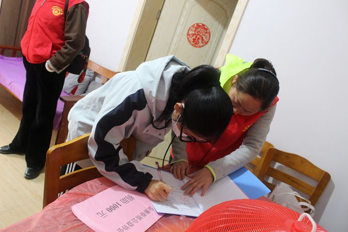 每到一户,志愿者们就和孩子们以及家长们攀谈起来,嘘寒问暖,场面温馨、感人。居住在白塔畈镇光慈村的姚同学,她的父亲目前已进入肝硬化失代偿期,慢性肝衰竭,甲状腺功能减退,每个月都需用药;姐姐先天性脑瘫。全家生计仅靠母亲务工维持。谈到这些情况,姚同学的父亲满是无奈,但对邻里志愿者和大家的帮助充满了感激之情。