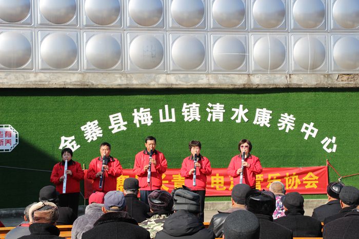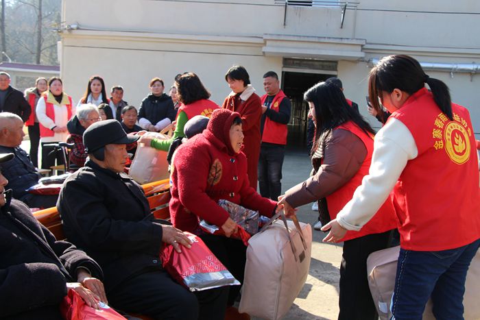 12月28日,春雨公益协会党支部部分党员和协会多名志愿者奔赴梅山镇清水敬老院,为这里的老人们捐赠爱心款物,并送去一场精彩的文艺演出。其中,徐子宸捐赠内衣30套,张书军捐赠内衣26套和袜子60双,金六商贸姚琳琳捐赠棉被4床,李学琴捐款1000元,王成云捐赠棉服2套,王成芳、何思玲、宏顺食品李祖会、事顺律师事务所郑大志、福满多超市汪莉等赞助演出费用,并购买保暖手套56副。