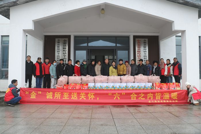 1月31日上午,金寨县金六商贸有限责任公司总经理舒先陆一行奔赴麻埠镇全山村,为这里的20户困难家庭捐赠棉被20床、大米20袋,食用油20桶以及光明牛奶20箱。春雨公益协会提供后勤保障等志愿服务。
