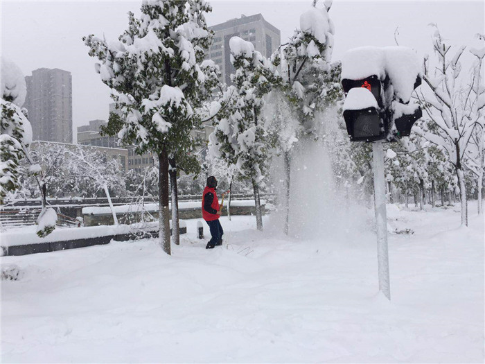 1月3日,我县迎来入冬第一场雪,地面积雪深度达30厘米以上,新老城区的许多树木被积雪压断了。看着一棵棵压弯的树木,一根根压断的树枝,人们的心疼了。心痛不如行动,金寨春雨公益协会的志愿者们自发地加入到这场众志成城的抗雪救援行动中来。在红军广场、体育馆、洪家河景观带以及窑冲南巷,都留下了协会志愿者暖心的身影。大家不畏严寒,高举着竹竿,对绿化树木上的积雪进行仔细地清扫。一共有20名协会志愿者参加了这次活动。